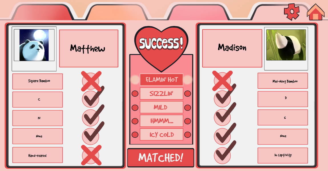 Players acted as a conservationist for the Zoo, playing minigames culminating in a rapid-fire speed date to find the perfect matches. Created with Unity.